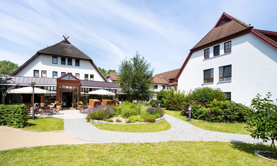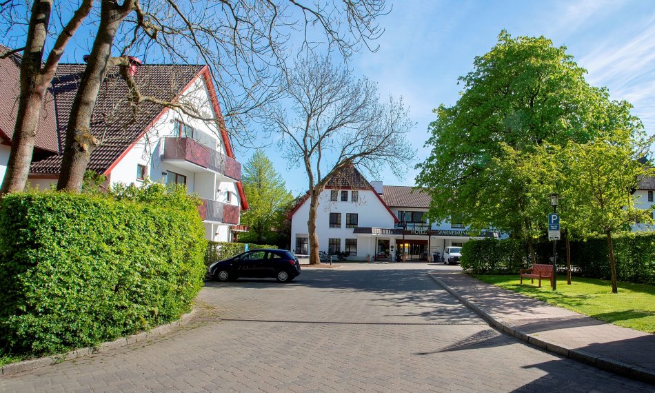 Machen Sie Urlaub im 4* Hotel in Warnemünde! Das reetgedeckte Hotel, idyllisch im Grünen gelegen und nur 950m vom Ostseestrand entfernt. Zimmerausstattung: DU/WC, Föhn, Schreibtisch, LCD-TV mit Sky Bundesliga 1, Sky Sport News und Sky Sport 1, Radio, Minibar, Direktwahltelefon und W-LAN Schwimmbad und Fitnessbereich kostenfrei nutzbar. Sauna und Wellnessanwendungen gegen Gebühr.