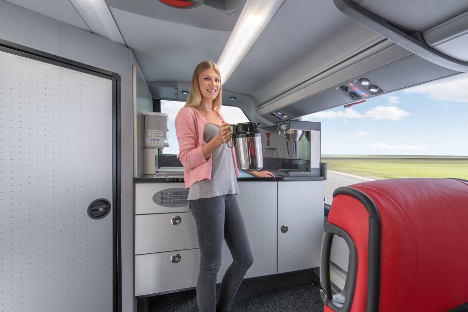 ✔ in allen Bussen: 230 V-Steckdosen oder USB-Anschlüsse zum Aufladen Ihrer mobilen Geräte in allen Sitzreihen