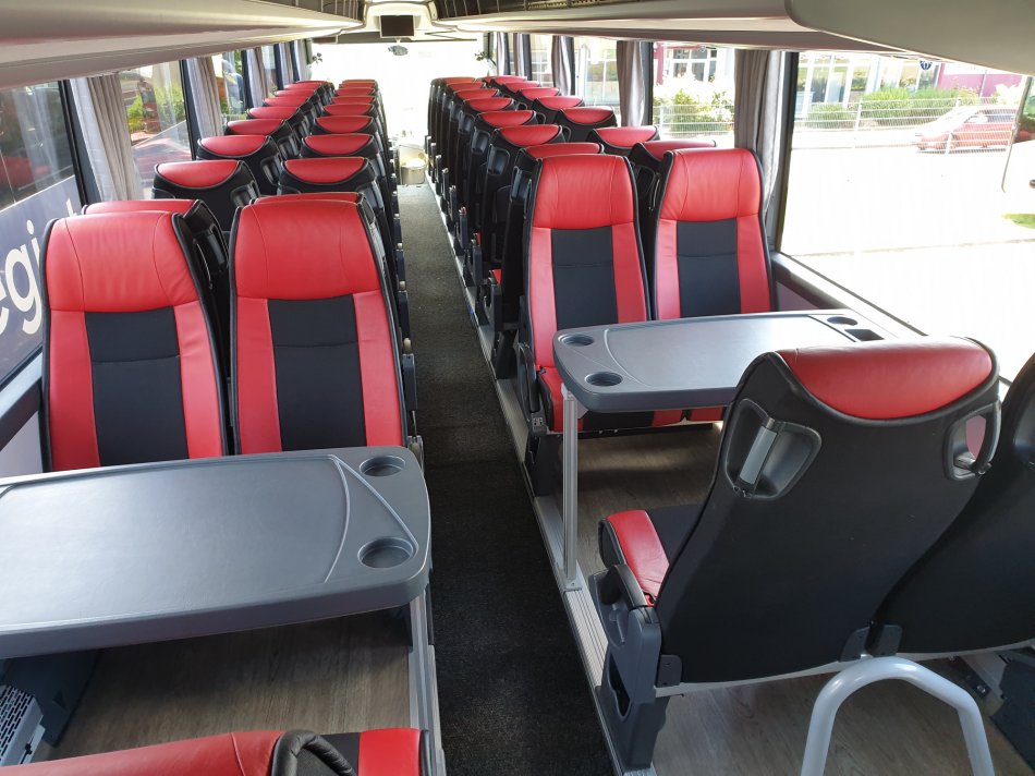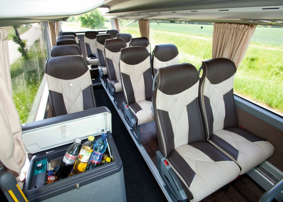 ✔ in fast allen Reisebussen zwei 4er-Sitz-/Tischgruppen